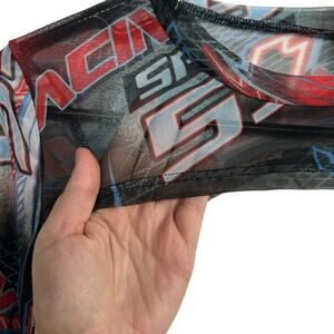 • Design Features: Sheer mesh fabric, bold racing motifs (text: “Burn Up the Street,” “Racing”), stretch fit