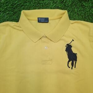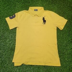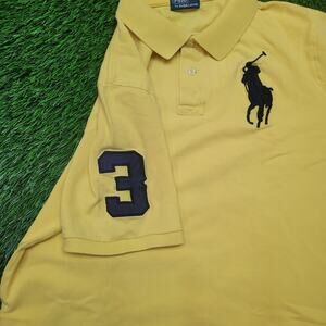 Y2K Ralph Lauren Big Pony polo mens small yellow pique cotton shirt navy logo number 3 sleeve classic preppy style