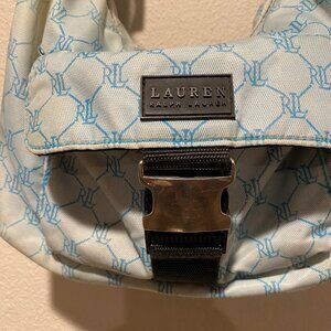 Y2K Ralph‎ Lauren Blue Gray Crescent Shoulder Bag Monogram Purse Vintage