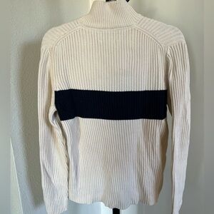 Y2K Ralph Lauren Cream and Navy Blue Turtleneck Sweater with Ribbed Knit Texture