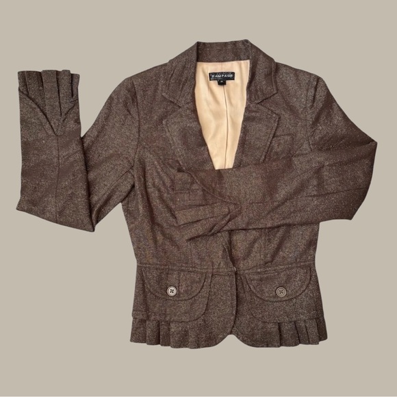 Y2K Rampage Metallic Thread Pleated Ruffle Blazer