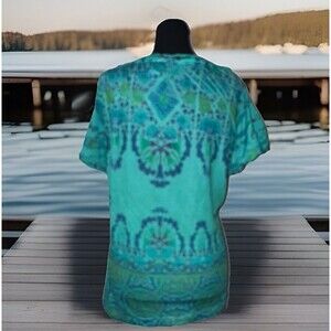 The Y2K Ransom T-Shirt Top in size 18/20 features a stylish all-over floral print, perfect for a boho beachy look. Made from a lightweight and stretchy cotton blend jersey fabric, this classic babydoll top with a round neck and short cap sleeves is easy to care for and suitable for all seasons. The green color and shimmer accents add a touch of nature-inspired charm, making it versatile for various occasions. The pull-on closure and straight hem style complete the relaxed fit of this trendy yet timeless top.