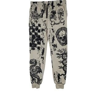 Y2K Rebel Vengeance Skull Graffiti Graphic Jogger Sweatpants Goth Size XL 3735
