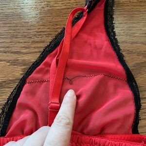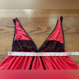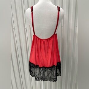 Y2K Red Black Lace Babydoll Slip Medium Sheer Whimsigoth Vamp Goth Romantic VTG