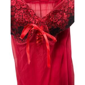 Y2K Red Mesh Babydoll Nightie Lingerie 2X Coquette Romantic Goth Vintage