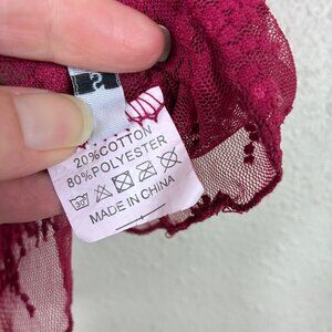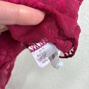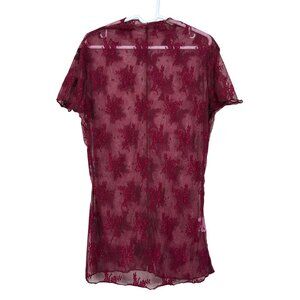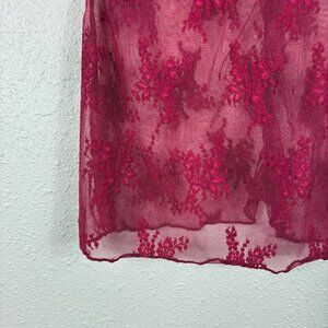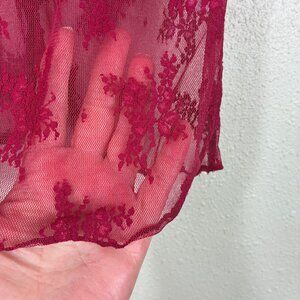 Y2K Red Sheer Mesh Lace Floral Top Size S