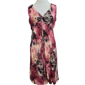 Y2K Relativity L Pink Midi Wrap Dress Abstract Floral Vacation Retro Boho Beach