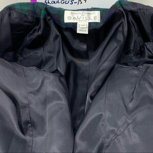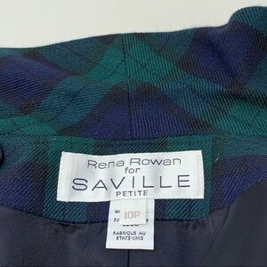 Vintage Rena Rowan Saville Wool Blend Green Blue Plaid Tartan Blazer Brass Buttons Made in USA Size 10 Petite