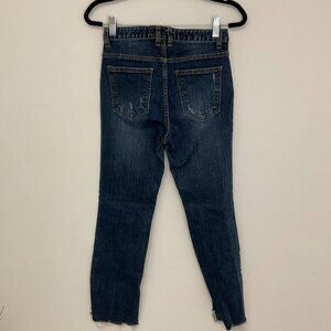 Y2K Renewal Distressed Denim Skinny Jeans Raw Hem Size 28 Blue