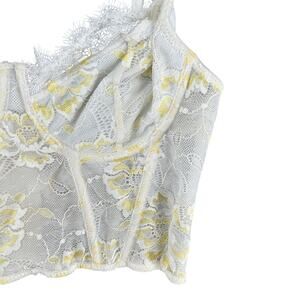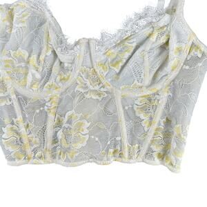 Y2K Retro Fairycore Corset Lace Sheer White Yellow Floral Caged Boning XL