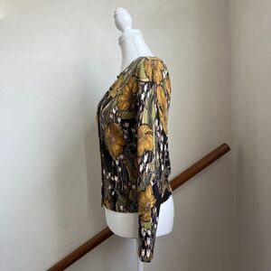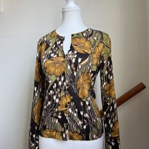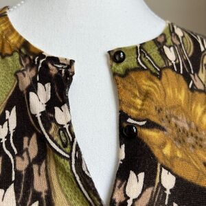 Y2K Retro Floral Print 60s 70s Inspired MCM Pima Cotton Cardigan Sweater Top S