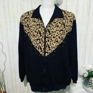 Retro VTG GW by Graff Womens Jacket Animal Print/ black in excellent condition no flaws, 1980s made in the USA, Studded, see all pictures for details. Size Large fit oversized.full zipper.