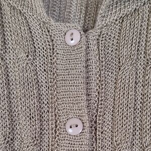 Y2K Ribbed Button Up Cardigan Sweater Size S/M Brown Tan Knit Crochet Modest