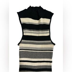 Y2K Ribbed Knit Striped Sleeveless Mock Neck Top – Hooked Up by I.O.T., Size M