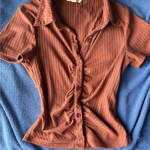 But only the top two buttons button, the rest are decorative 🤎 very comfy and stretchy material. Flattering pleated shape.