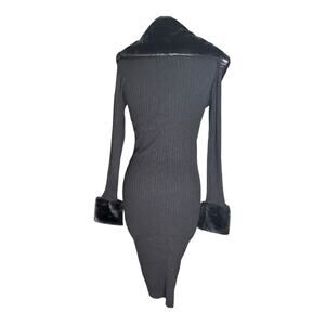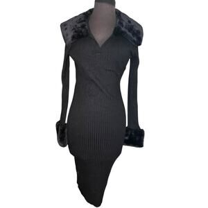 Y2K Ribbed Sweater Faux Fur Trim Midi Dress Size M Mobwife Glam Maximalist Vamp