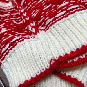 Y2K Ricki Women’s Red Cream Hand Knit Crew Neck Sweater Size M NWT All Over Print