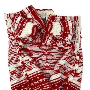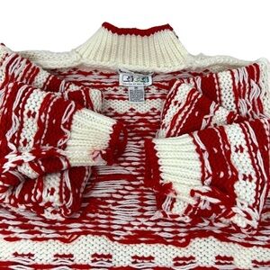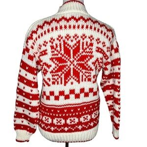 Y2K Ricki Snowflake Hand Knit Crew Neck Sweater Size M NWT Red Cream Chunky Knit