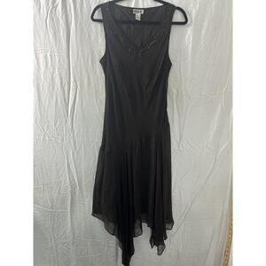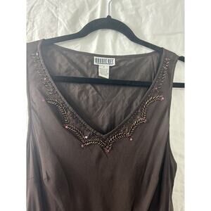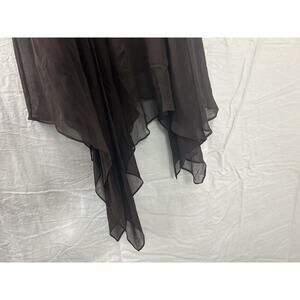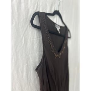 Y2K Robbie Bee 100% Silk Brown Beaded Maxi Dress Asymmetrical Sz 14 Fairy Whimsy