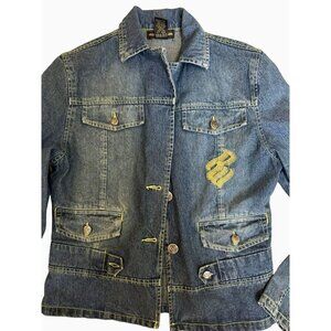 Y2K Rocawear Embroidered Denim Jacket Med Large Vintage 90s Fitted Blue Jean