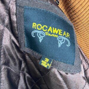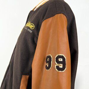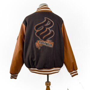 Y2K Rocawear varsity jacket w/ faux leather sleeves in brown