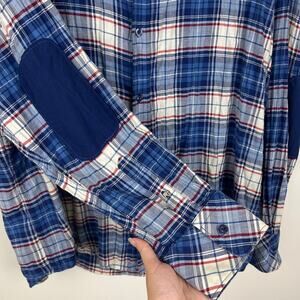 Y2K Rocawear Plaid Flannel Button Up Shirt XL Blue Red Multicolor Elbow Patch