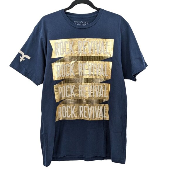 Y2K Rock Revival Graphic T Shirt Size Men L Gold Logo Grunge Streetwear USA Made