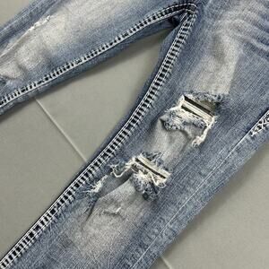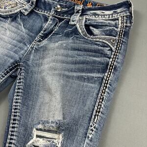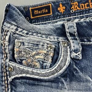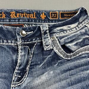 Y2K Rock Revival Jeans Mertie Straight Low Rise Jeans Embroidered Distressed 27