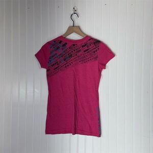 Throw it back with this bold hot pink Roxy Paradise tee, featuring an all-over staggered Roxy logo print in black and gray. With its fitted cut, short sleeves, and soft cotton-blend jersey, this Y2K-era shirt is perfect for surf-skate styling or nostalgic 2000s vibes.