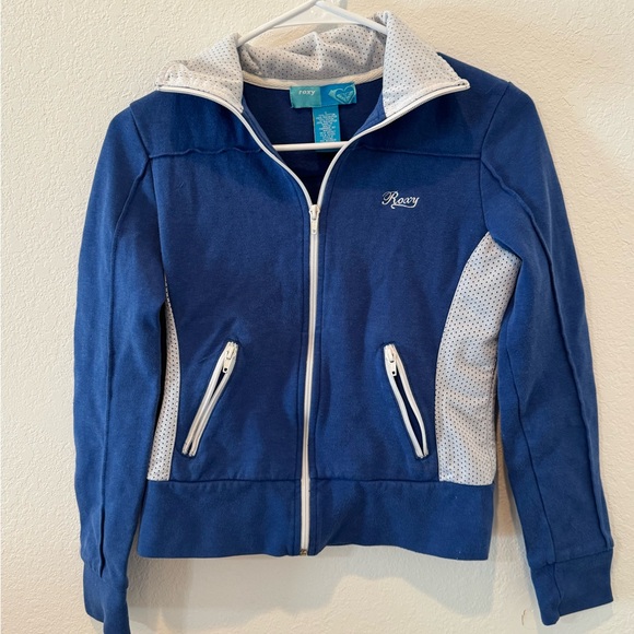 Throw it back to the early 2000s with this adorable Y2K-era blue and white Roxy jacket! Perfect for skater girl vibes.