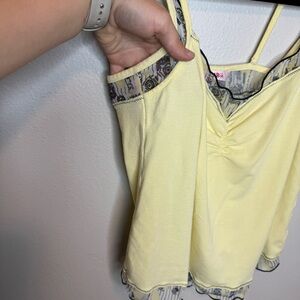 Y2K Rubii Tank Top Yellow Lace Strappy Ruched Bust Camisole