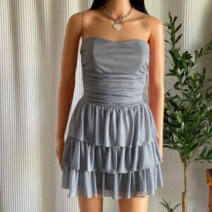 Y2K Ruby Rox Strapless Ruffle Mini Dress Stretch Gray Tiered Party Dress Siz 5