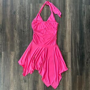 Y2K Ruched Halter V Neck Dress Asymmetrical Frill Hem Size Large Charlotte Russe