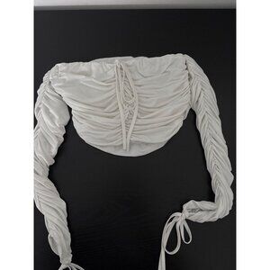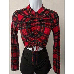 Y2K Ruched Top Bundle Size Medium Plaid Long Sleeve & White Drawstring Going Out