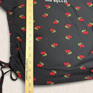 Y2K Rue21 Cherry Print “Ma Chérie” Ruched Long Sleeve Top Size M Grunge Punk