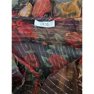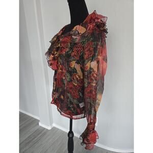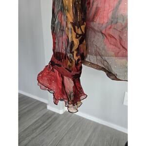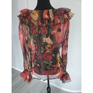 Y2K Ruffled Collar Sheer Floral Romantic Flounce Sleeve Silk Blend Blouse Sz L