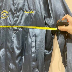 Y2K SATIN VARSITY BOMBER JACKET WESTSTARK TRENDY SZ L BLUE/YELLOW MADE IN USA