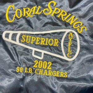 The jacket showcases exquisite embroidery details, featuring 'Coral Springs Eagle Football Club' and 'Coach Linda' on the front, adding a personal and distinctive touch. This size L jacket is designed to provide a comfortable, relaxed fit, perfect for layering over your favorite outfits.l Excellent Condition