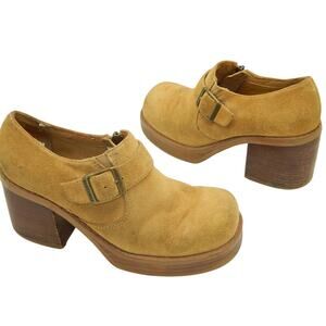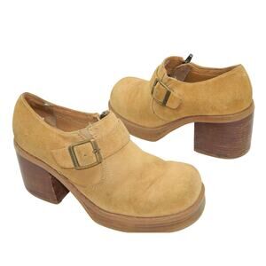 Y2K SKECHERS Tan Suede Platform Chucky Heel Loafer Size 7