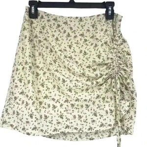 Y2K SKIRT WOMENS MEDIUM RUCHED 90s INSPIRED FLORAL MINI INVISIBLE ZIPPER COTTON