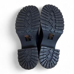 Really cool, heavy duty Chunky matte black upper, with adjustable buckle strap and cute rhinestone dangling charm. Very good condition, there is a little knick on the toes please see photos. 3" block heel