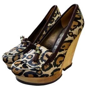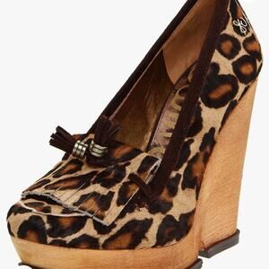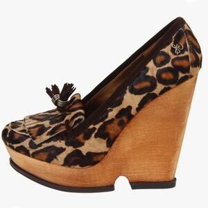 Y2K Sam Edelman Wesley Pump Calf Hair Leather Tassel Fringe Leopard Shoe 7.5