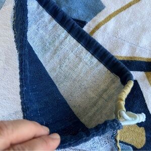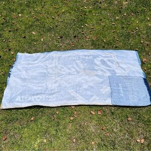 Y2K San Diego Padres MLB Diving Catch Giveaway Packable Beach Towel. Blue and White with the Padres Y2K logo and an AOP of a player diving for a catch. Has its own little pocket to pack the towel including a drawstring.
