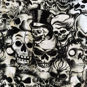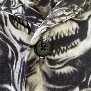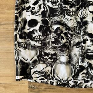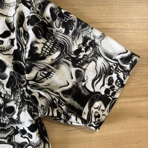 Y2K Sapphire Lounge AOP Skull Button Up Collar Black And White Shirt Size Medium
