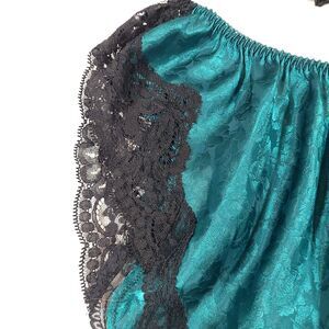 Y2K Satin Floral Lace Nighty Slip Set S Green Courtenay 3pc Highrise witchy goth