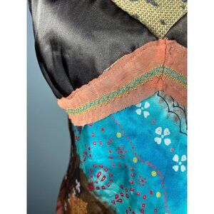 Y2K Satin Slip Dress XL Babydoll Boho Print Adjustable Straps Festival