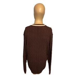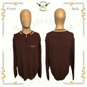 Y2K Sean John Cotton Pullover Cable Knit Sweater Mens Size Large Brown 1/4 Zip