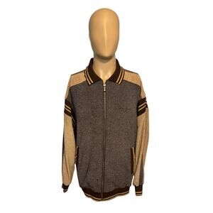 Y2K Sean John Full Zip Sweater Brown Collared Terry Cotton Mens Size Large