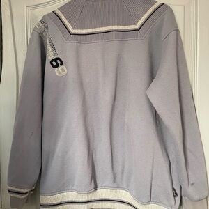 Ribbed gray jacket with a sleek design. Perfect for layering.