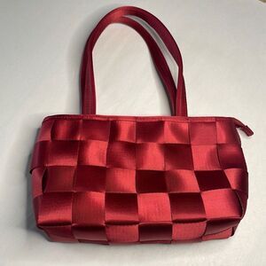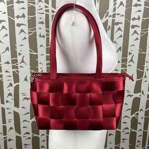 Additional Details: Zip top closure with sweet little silver butterfly zipper pull, red/white gingham checkered lining, one interior zip close pocket, two interior slip style pockets.
